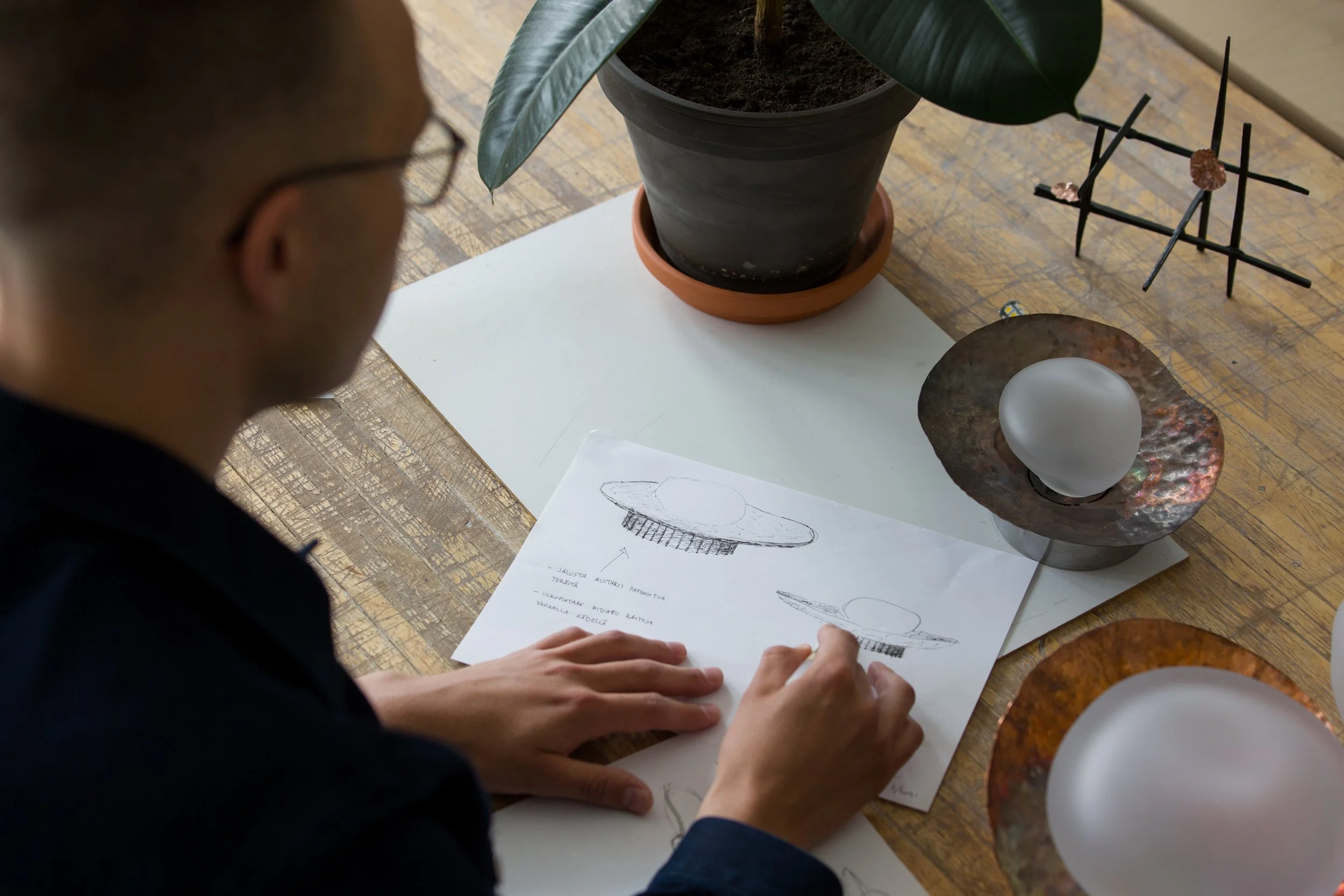 The richness of texture is achieved by applying multiple craft-processes from hand-blown and sandblasted glass to using welding in a decorative way. Although sculptural in expression, these lights aim to create a mood in the background, revealing the layered process only when looked closer.